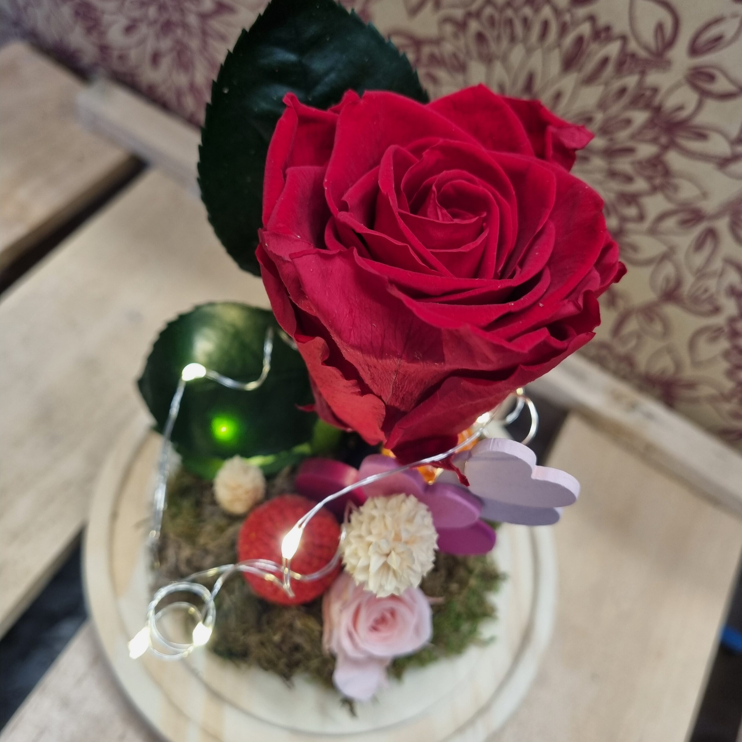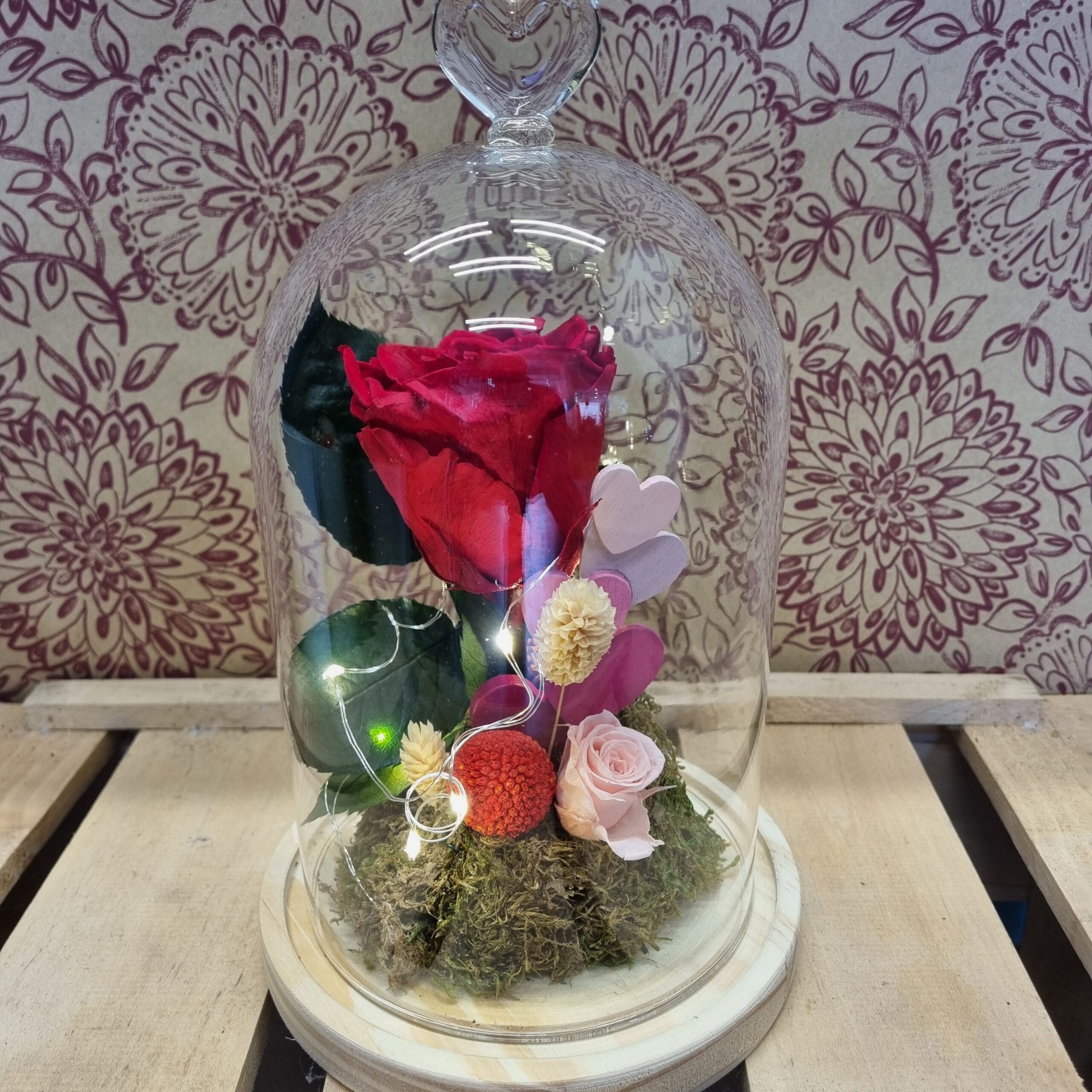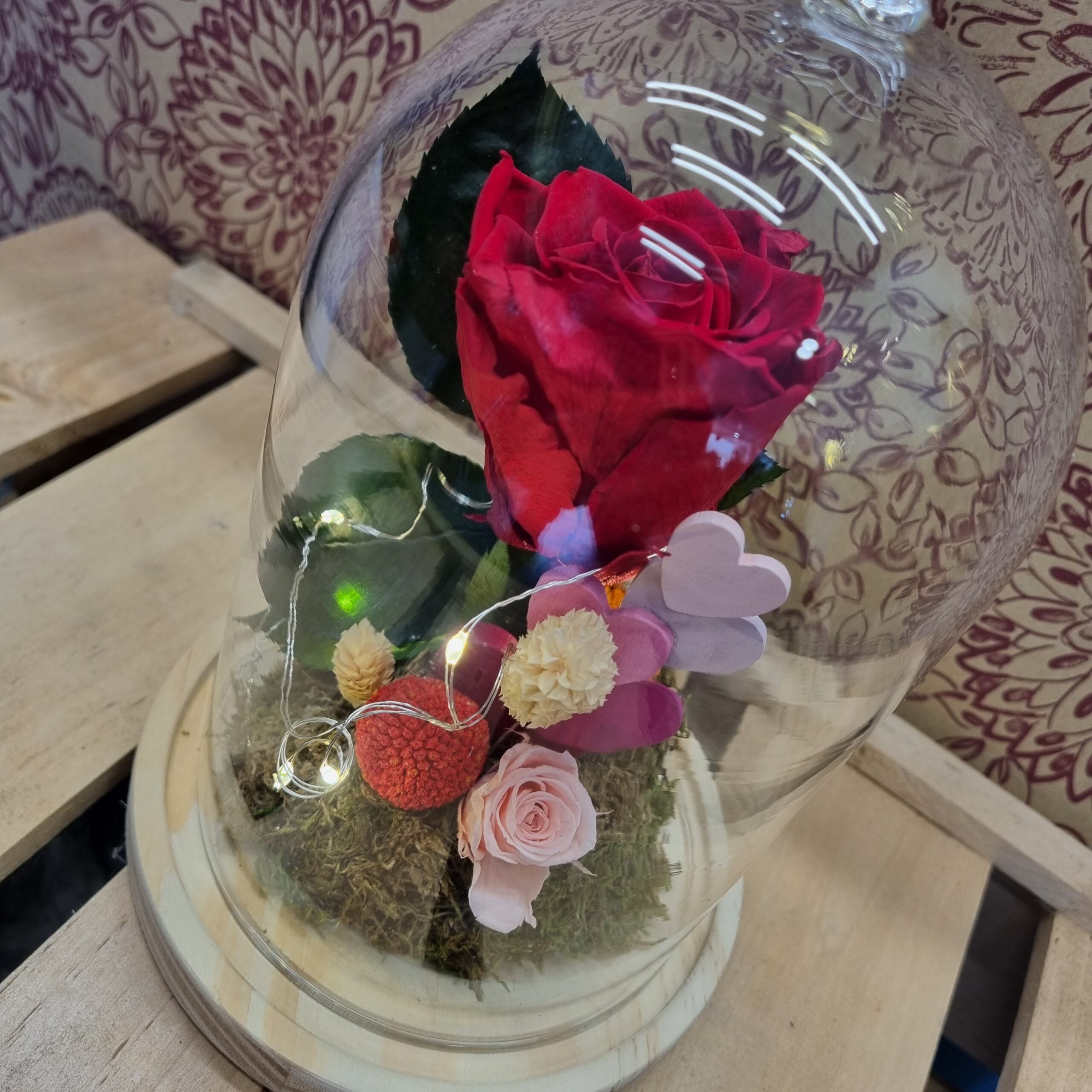 ​Aquest Sant Valentí, regala una experiència completa. La nostra cúpula «Eternity Love» no sols és un espectacle visual amb el seu rosa preservada i llueixes LED, sinó que guarda un secret: una aroma fantàstica a rosa fresca que et transportarà a un jardí en plena floració cada vegada que l’acostis.