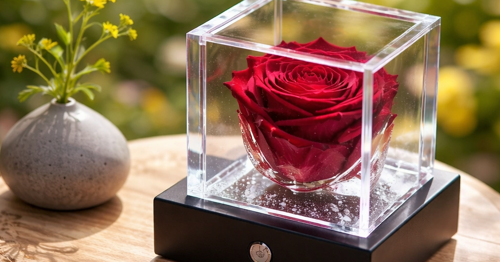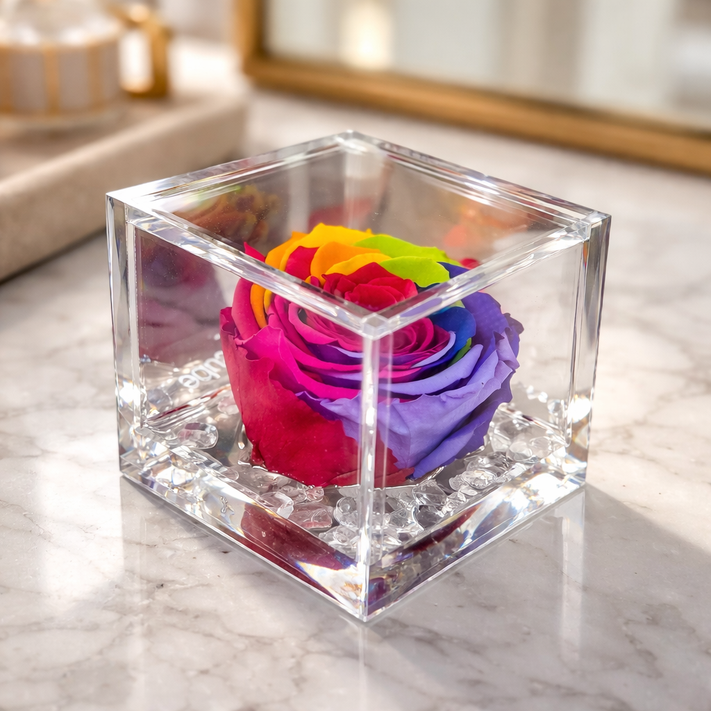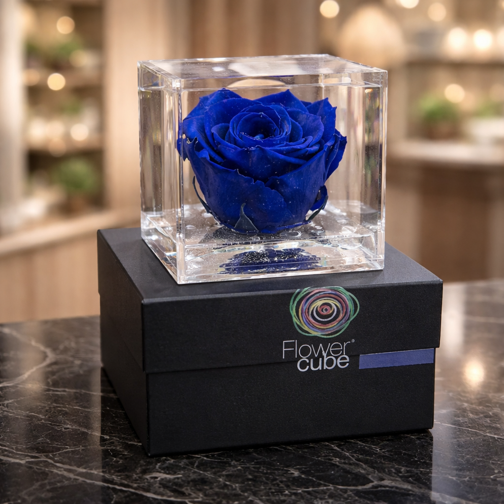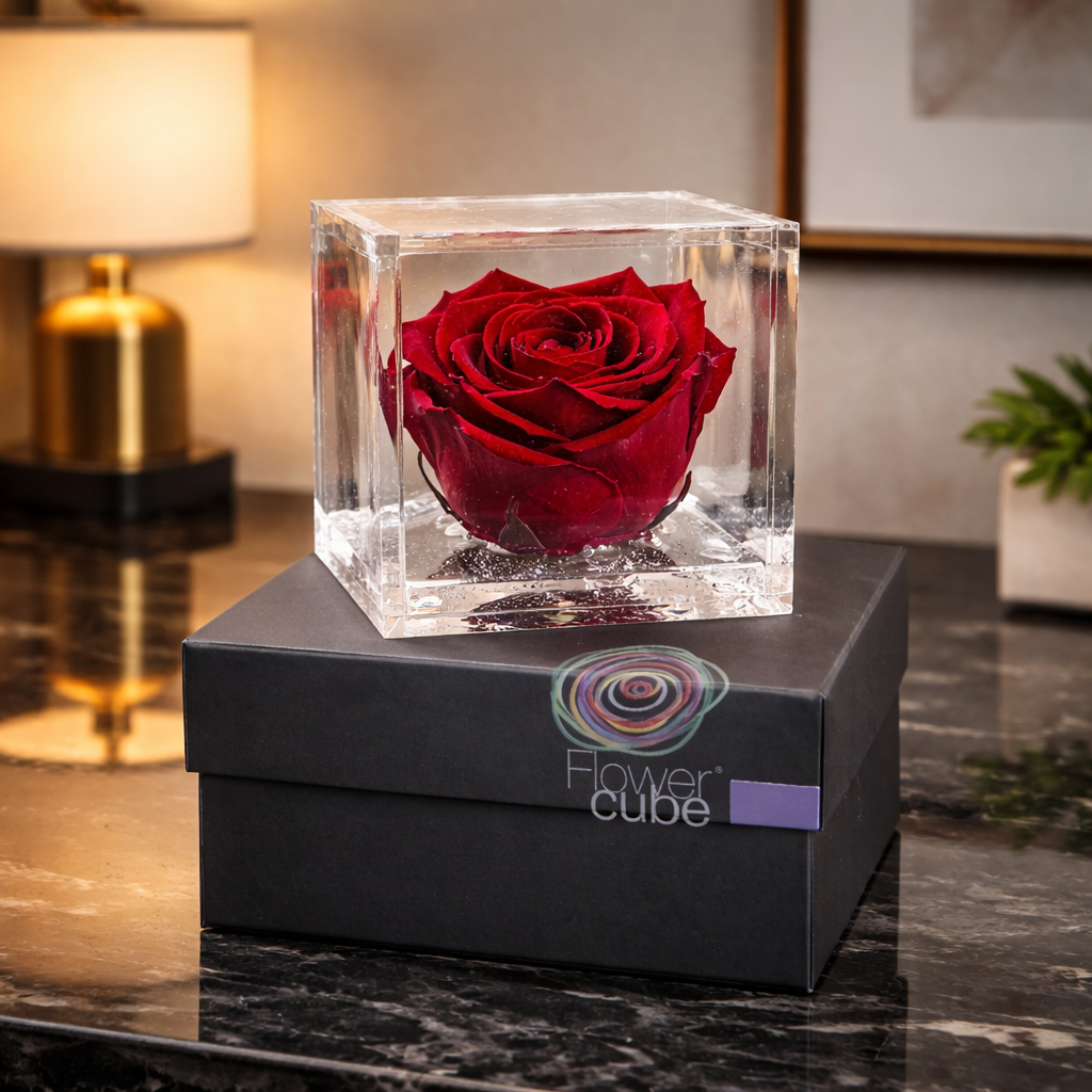 Flowercube és una rosa real, perfumada, preservada i de llarga durada! L’elegant disseny del cub realça la bellesa de la rosa, estimulant els sentits. L’energia del color comunica emocions: la rosa guarda un secret, i Flowercube, amb el seu alt valor simbòlic, el revela!