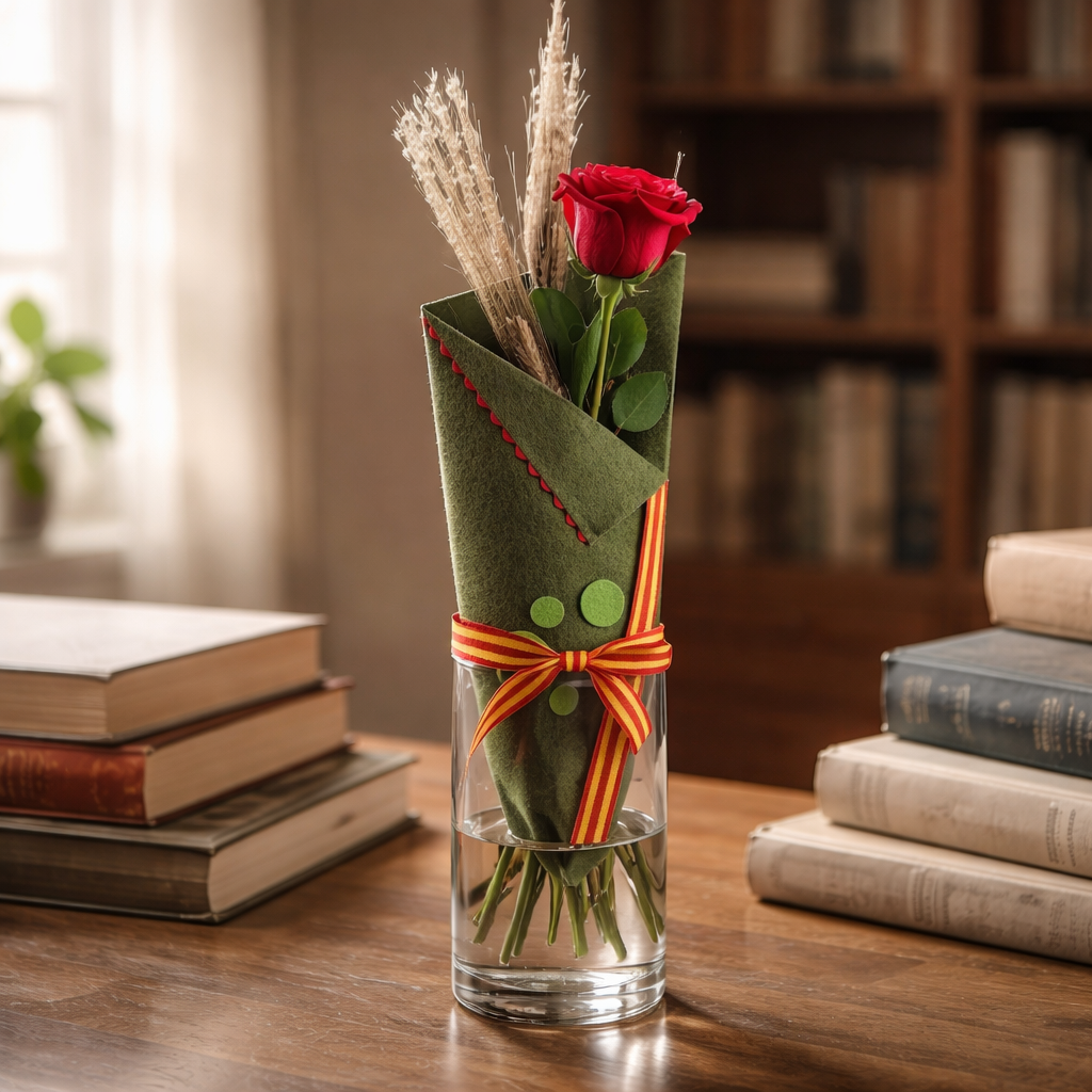 Rosa de Sant Jordi Artesanal amb Suport de Feltre
