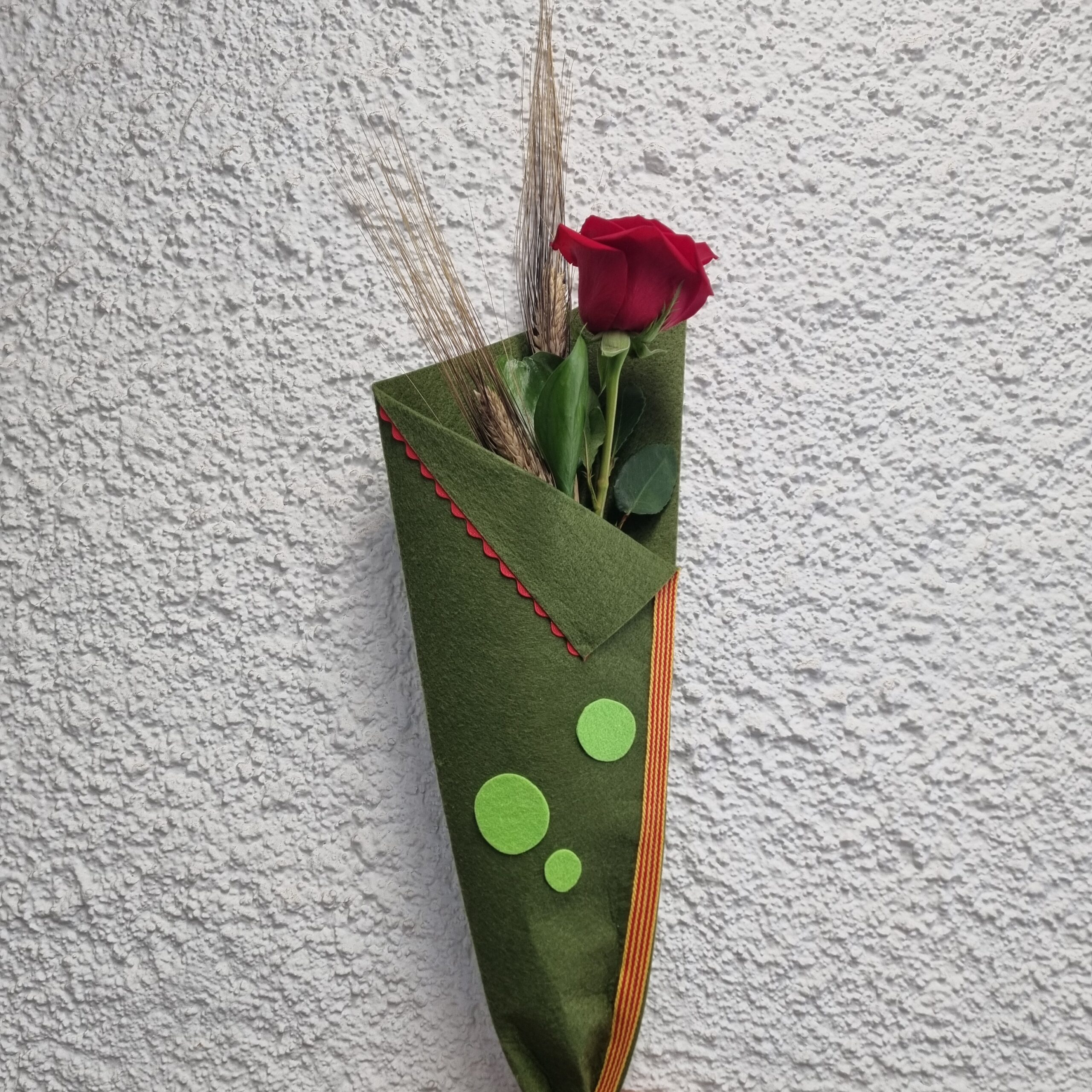 Porta la tradició i l’elegància d’una rosa de Sant Jordi al teu espai amb aquesta peça artesanal única. Aquesta rosa de feltre, elaborada amb delicadesa i cura pels detalls, captura la bellesa i el simbolisme d’aquesta celebració tan especial.
